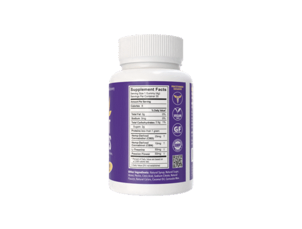 Non-melatonin sleep support gummies formulated with CBD, CBN, L-theanine, and passion flower to promote relaxation, ease nighttime tension, and support deeper, more restorative sleep without next-day grogginess.